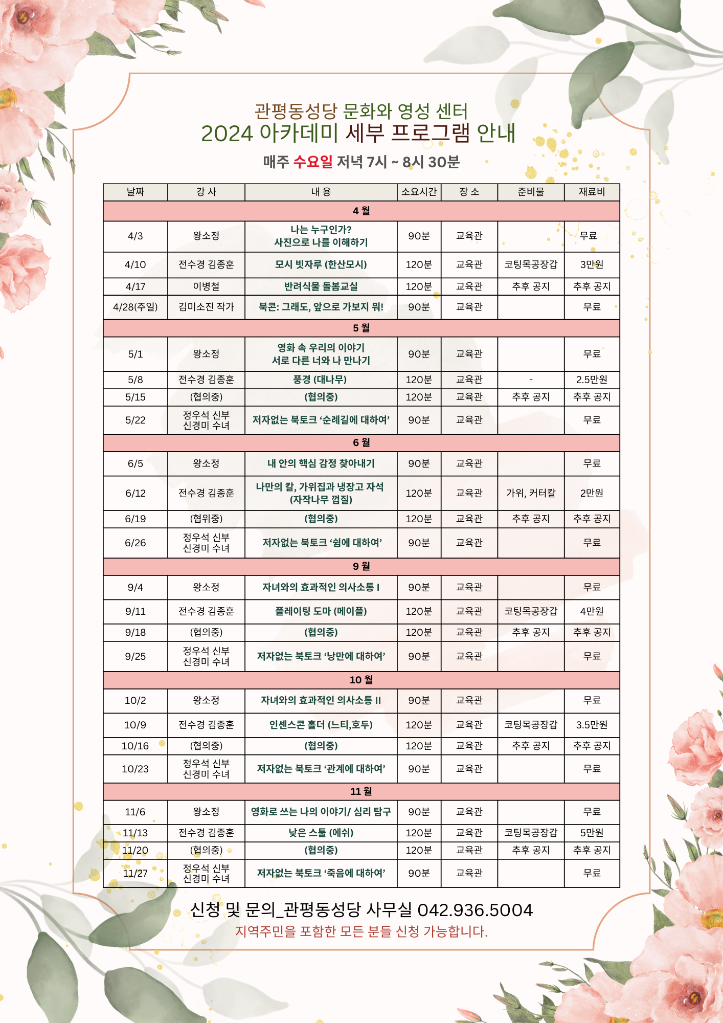 | Á¦ ¸ñ | [°üÆòµ¿¼º´ç ¹®È¿Í ¿µ¼º ¼¾ÅÍ : 2024 ¾ÆÄ«µ¥¹Ì] ÇÁ·Î±×·¥ ÀÏÁ¤ ¾Ë¸² | |